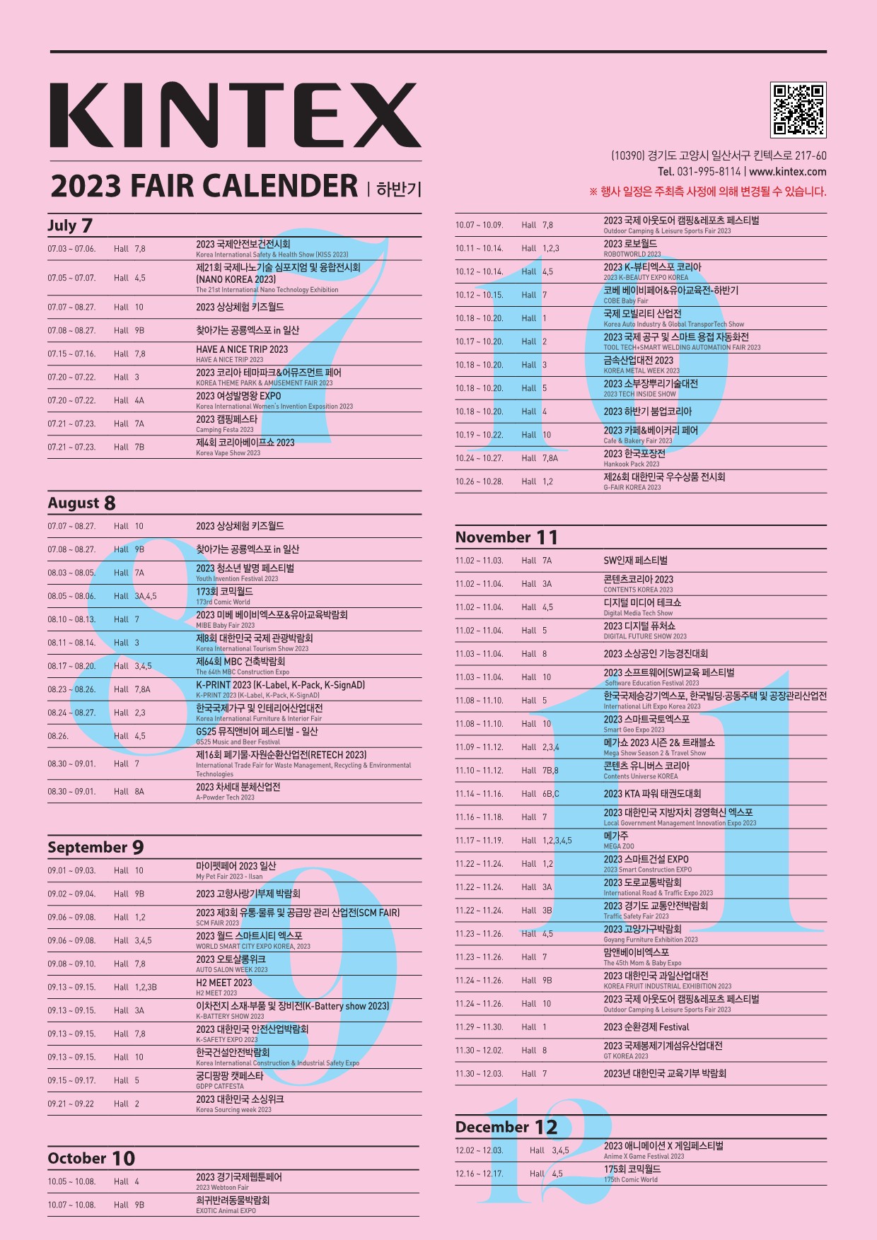 일산 킨텍스 전시회 일정을 안내드립니다. 2023 11월, 12월 스케줄입니다. 전시화, 문화행사등 다양한 이벤트가 열리고 있습니다. 사전등록 시 무료입장이 가능한 정보도 안내드립니다.